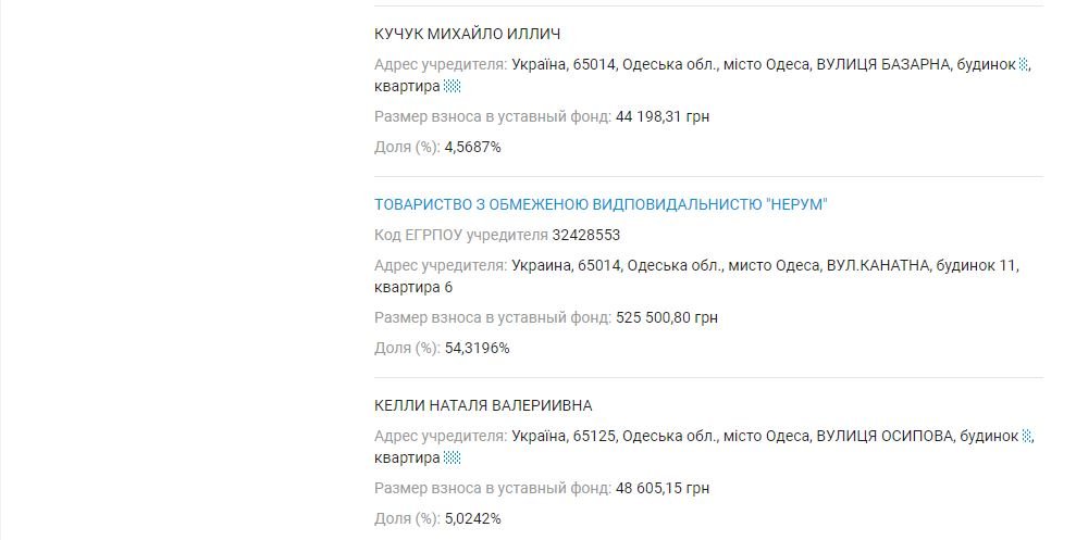 А вот ТОВ "Лидер-7", где конечным бенефициаром является жена Кучука, также конечным бенефициаром является российский предприниматель Игорь Туров.