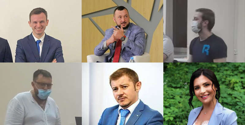 (Підозрювані в справі привласнення "злодійського общаку": Вахтанг Бочорішвілі, Володимир Павленко, Ігор Король, Денис Сердюк, Віталій Сигидин, Оксана Сєрокурова)