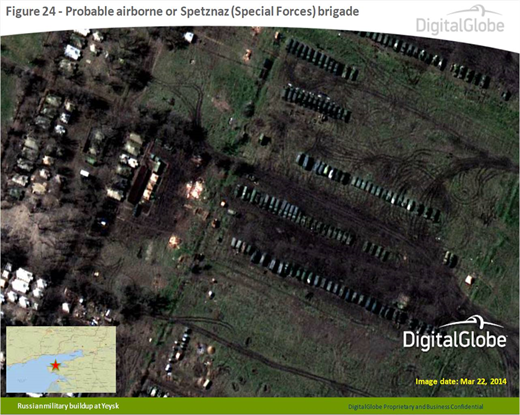 Штаб верховного главнокомандующего Объединенными вооруженными силами НАТО в Европе опубликовал в четверг пакет спутниковых снимков, на которых изображено местоположение и тип российской военной техники вдоль границы с Украиной. Снимки датированы 22, 26 и 27 марта 2014 года.