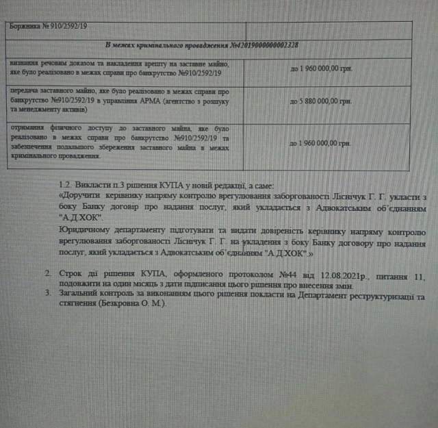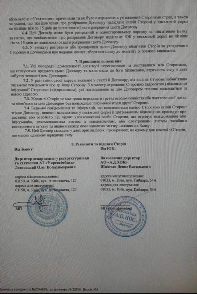 Об этом нашей редакции стало известно из Договора о предоставлении услуг между адвокатским объединением A.D.HOC и АО "Укрэксимбанк".