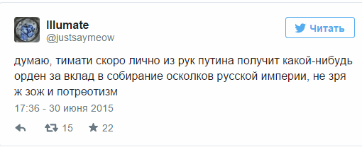 Среди прочего Тимати обещает собрать "осколки российской империи", попутно обвиняя президента США Барака Обаму за то, что тот якобы стал организатором революции в Украине и "рассорил братские народы".