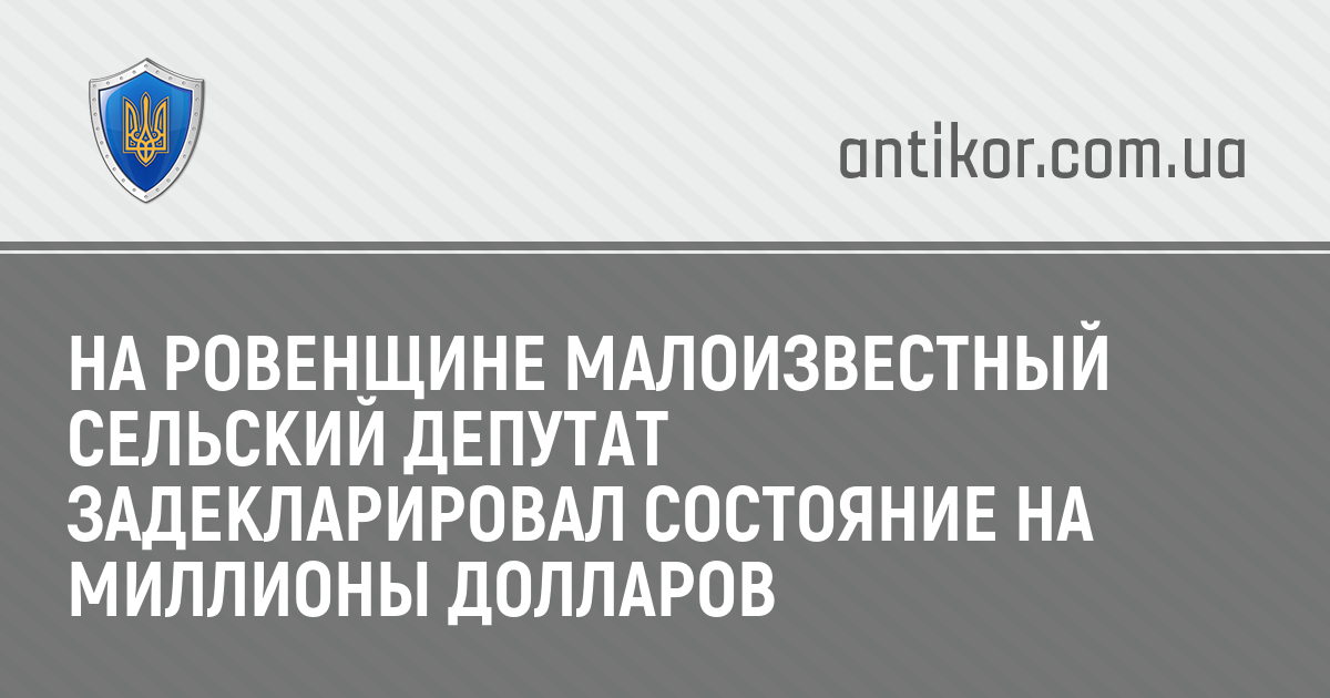 На Ровенщине малоизвестный сельский депутат задекларировал состояние на миллионы долларов