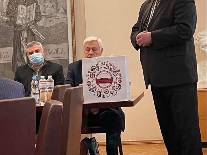 Сегодня, к примеру, Бугров показал, как поздравлял Институт философии им. Г.Сковороды с 75-летием. На его фото «позировал» подарочный пакет, а сам Бугров оказался «обезглавлен».