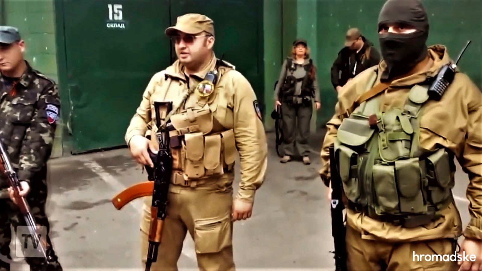 Станислав Слепнев («Монгол») во время захвата здания СБУ в Донецке в 2014 году