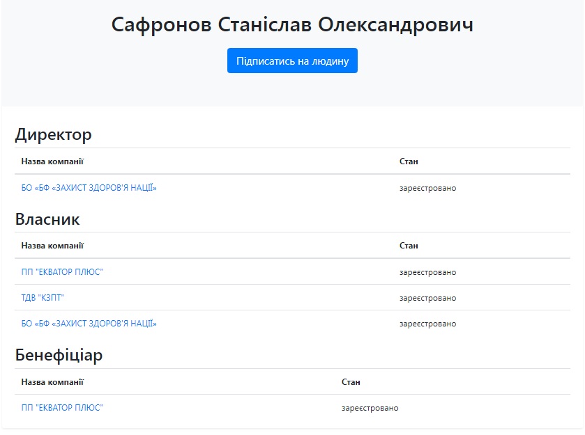 Впрочем, горевать ему особо не пришлось. Судя по данным реестров, Станислав Александрович времени на посту городского главы Днепродзержинска даром не терял. Не зря, видать, местные активисты утверждали, что он сильно путает городской карман с собственным, потому что Сафронов оказался успешным бизнесменом: