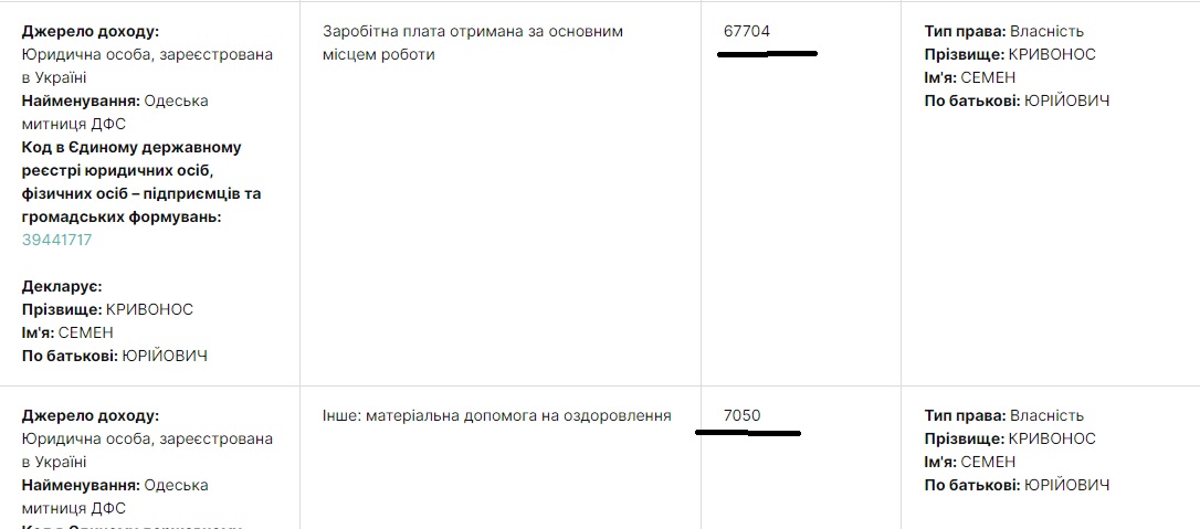 Стоит также упомянуть, что до работы на Одесской таможне Семен Кривонос возглавлял отдел регистрации прав на недвижимое имущество при Минюсте именно в Киевской области, откуда внезапно перебрался в Одессу, а после скандала и отказа от поста в НАБУ возглавлял государственное предприятие «Племенной завод «Плосковский» обратно в Киевской области.