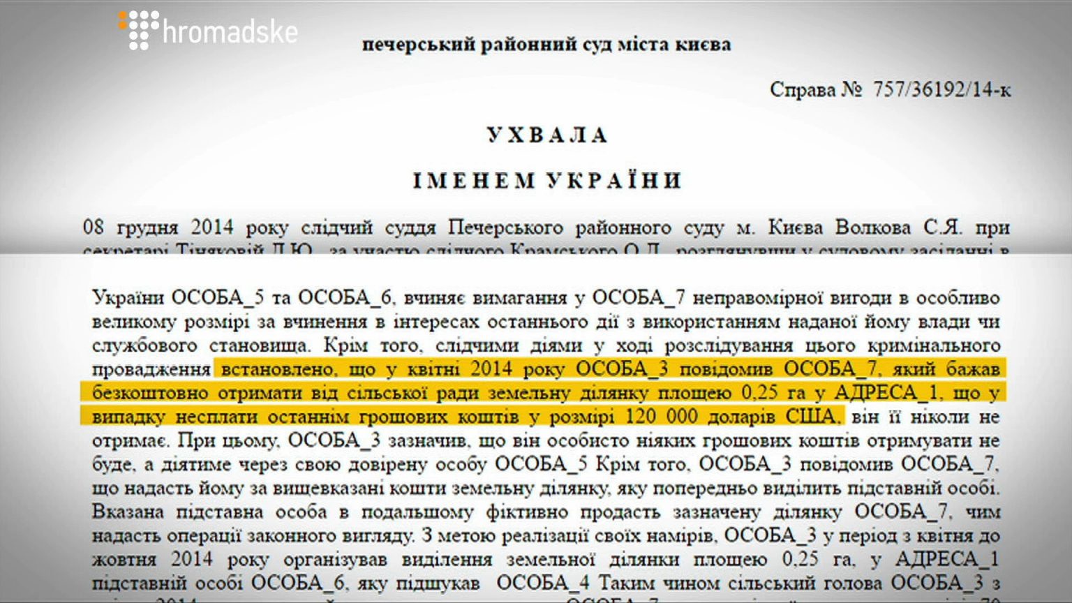 Однако это было не самым интересным – внезапно выяснилось, что Кривонос был фигурантом уголовного производства № 2014101110000061 по части 4 статьи 368 УК Украины (получение взятки в особо крупном размере). Досудебное следствие осуществлялось ГУ СБУ в Киеве и в Киевской области. Следствие настаивало, что Кривонос вместе с председателем сельсовета Старых Безрадичей потребовал от предпринимателя 120 тысяч долларов за выделение 25 соток земли.