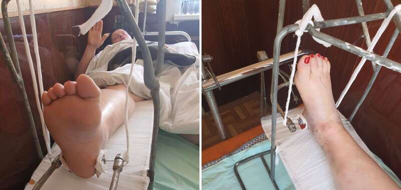 Она отметила, что находится в одной из киевских государственных больниц – на вытяжке. К ноге у актрисы прикреплена специальная гиря, вытягивающая ногу.