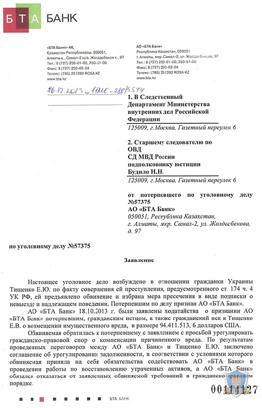 Ещё раз прошу Вас, глубокоуважаемый Асхат Кайзуллаевич, принять во внимание то, что я оказалась вовлечена в ряд процессов без желания нанести вред Республики Казахстан и казахстанским юридическим лицам. Готова оказать любое содействие правоохранительным органам Республики Казахстан и прошу Вас способствовать направлению в адрес Генеральной Прокуратуры для подтверждения, что претензий ко мне лично у Генеральной Прокуратуры Республики Казахстан и БТА Банка нет.