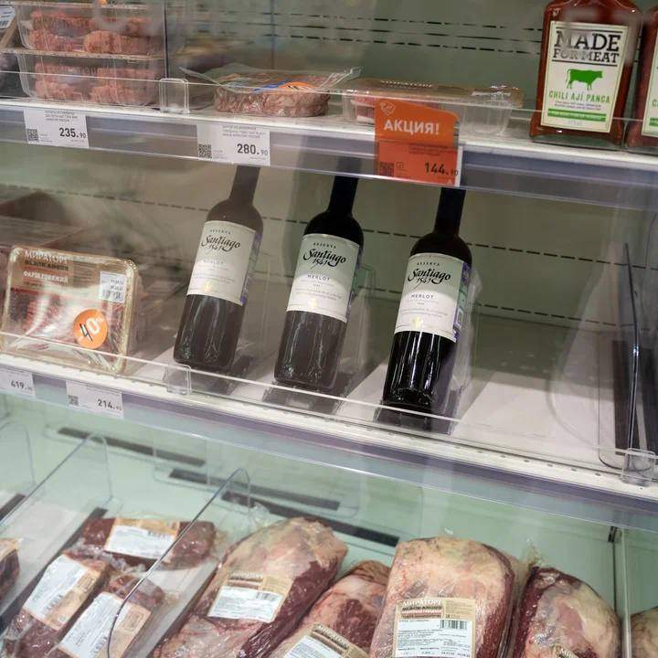 А на полицях, де було м’ясо, ставлять вино та соуси. Про це повідомив російський блогер, який опублікував відповідні фото.