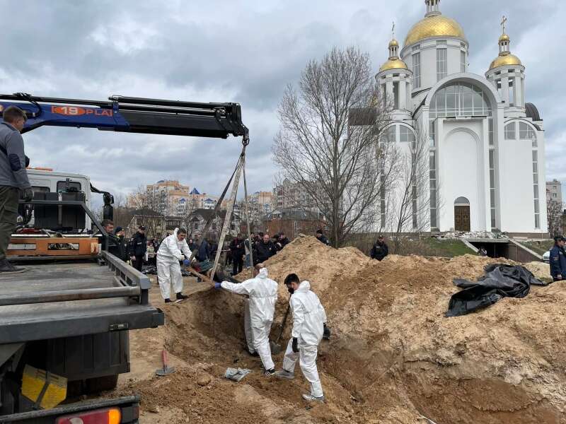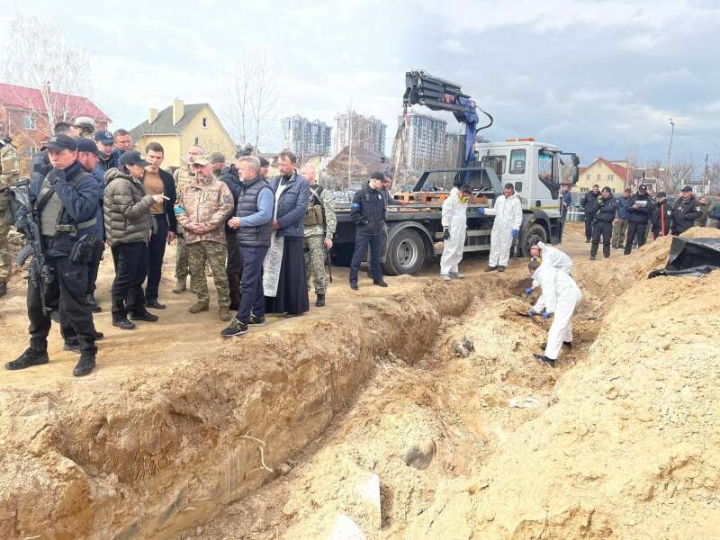 В Буче началась эксгумация тел жертв российских захватчиков. Возле церкви коммунальщики похоронили ориентировочно 67 тел.