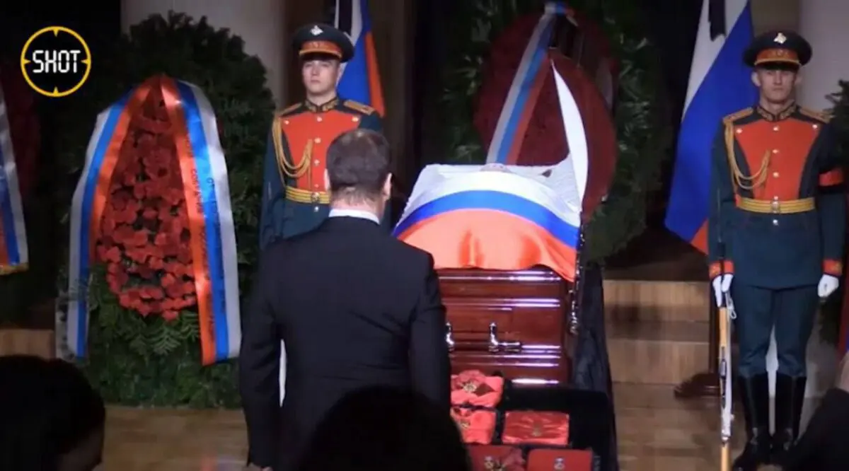 После чего тело Жириновского перевезли в Дом союзов, где с ним попрощалась вся путинская элита, и сам президент страны-агрессора.