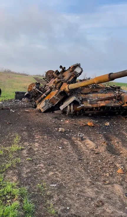 Защитники Украины неустанно уничтожают на родных землях захватчиков из России и военную технику преступной путинской армии. В сети показали еще один уничтоженный украинцами танк российских оккупантов.