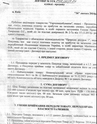 В частности, мне известно, что через 4 дня после расстрела Майдана и бегства Януковича скважины передавались ООО «Природные ресурсы +», которая имеет договор о совместной деятельности с ООО «Укргаздобыча» с 2004 года. Тогдашний и.о. руководителя «Укргаздобыча» А. Тамразов подписал договор, согласно которому государственная «Укргаздобыча» продала товар ООО «Природные ресурсы +». Этот «товар» — только вчитайтесь! — «нематериальный актив «Право пользования скважинами N11 та N12 Бабчинского месторождения». «Товар» был продан по цене всего за 450 тыс. грн. за штуку с НДС: