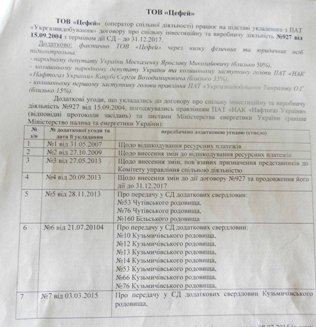 Поэтому «Укргаздобыча» закрывала глаза на неуплату налогов по договорам совместной деятельности, передавало новые скважины Онищенко, Кацубе, Москаленко.