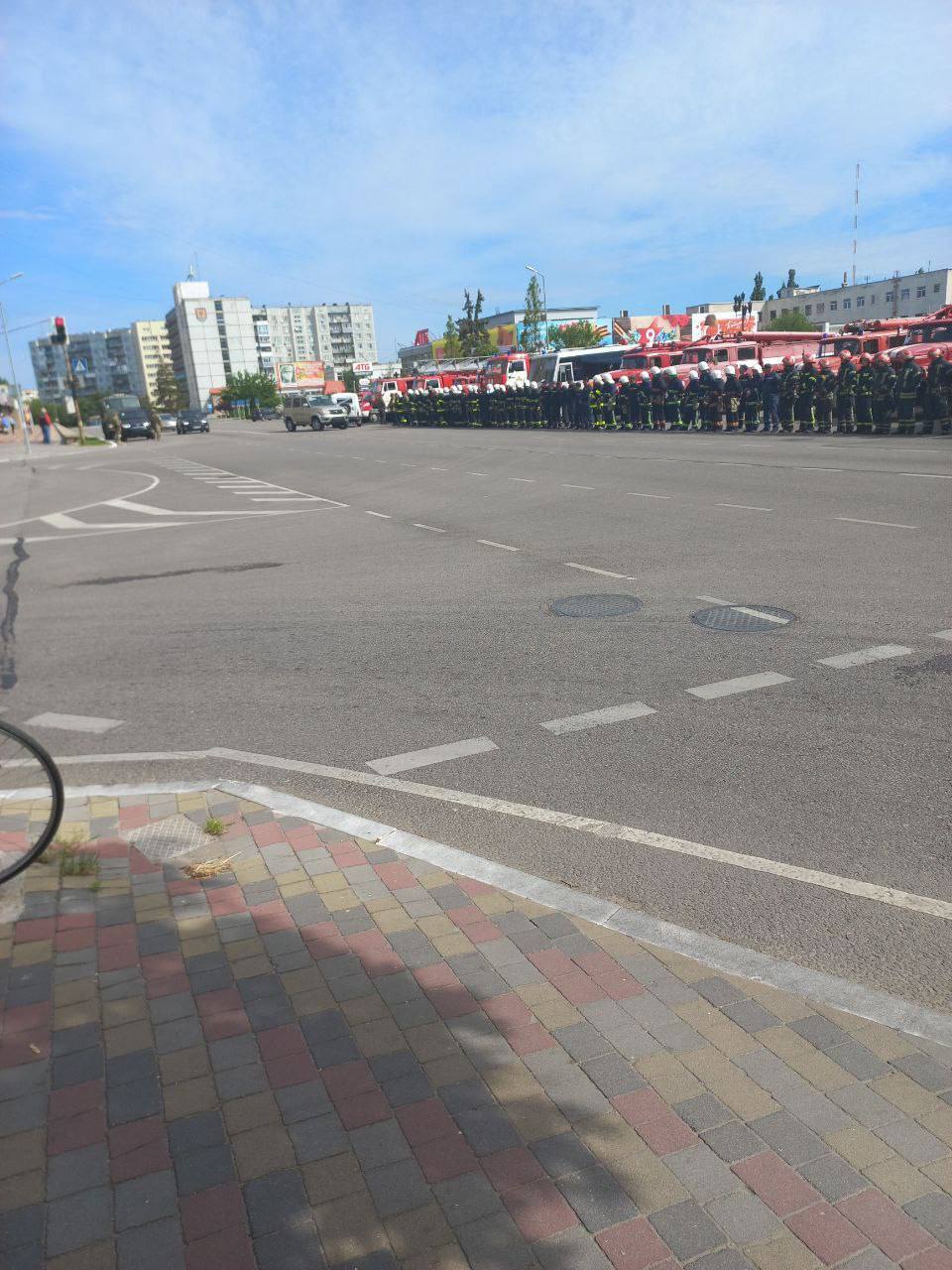 Во временно оккупированном Россией Энергодаре украинские спасатели вышли на протест против похищения рашистами командира пожарного отряда Виталия Трояна. На место, где пожарные выставили 14 единиц спецтехники, оккупанты сгоняют военную технику и около сотни солдат.