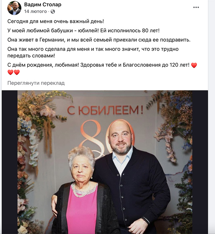 Тоді Столар пояснив поїздку родинним святом і навіть опублікував фото з бабусею в день її народження, яка мешкає у Німеччині.