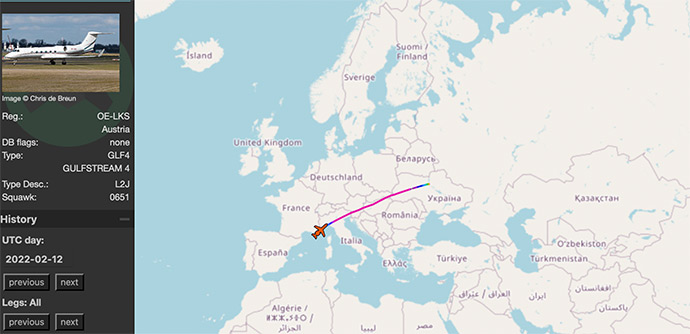 Відповідно до даних, наданих УП джерелами у правоохоронних органах, 19 лютого Олександр Герега вирушив до Варшави незвичним для себе пасажирським літаком. А 20 лютого зі стоянки у Братиславі до Варшави прилетів той самий Gulfstream G600, і того ж дня взяв курс на Париж.