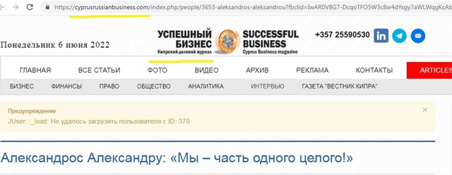 Этим же объясняется и разница в названии издания – «Успешный бизнес» и URL указанного материала: cyprusrussianbusiness. Раньше это издание так и называлось: Кипрский русский бизнес. Потом его переименовали, дабы причастность России к нему не так бросалась в глаза. Но «перебивать» все ссылки на материалы, размещенные в издании до переименования, никто не стал – слишком это хлопотно, да и мало кто обращает на эти детали внимание. Однако эта деталь еще раз подтверждает: Александру Александрос – всего лишь подставное лицо, давно работающее на российских олигархов, пользующихся кипрскими оффшорами.