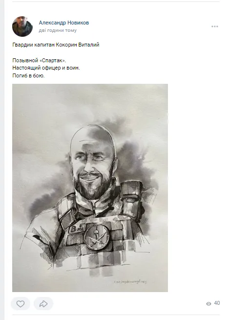 "Капитан спецназа ГРУ Кокорин Виталий "Спартак" из Мытищ официально денацифицирован и демилитаризован", - написал Штефан.
