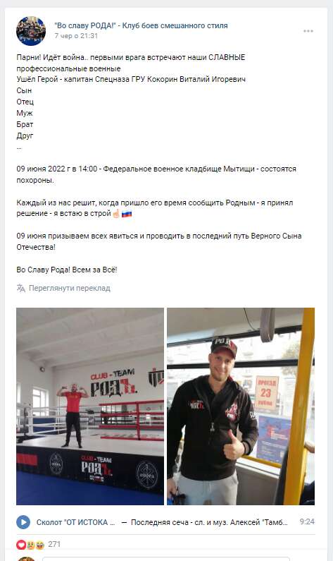 Если отбросить ужасающий пафос с примесью староверства, из поста следует, что о гибели Кокорина стало известно (или решили сообщить) 7 июня. Закопали его останки 9 июня.