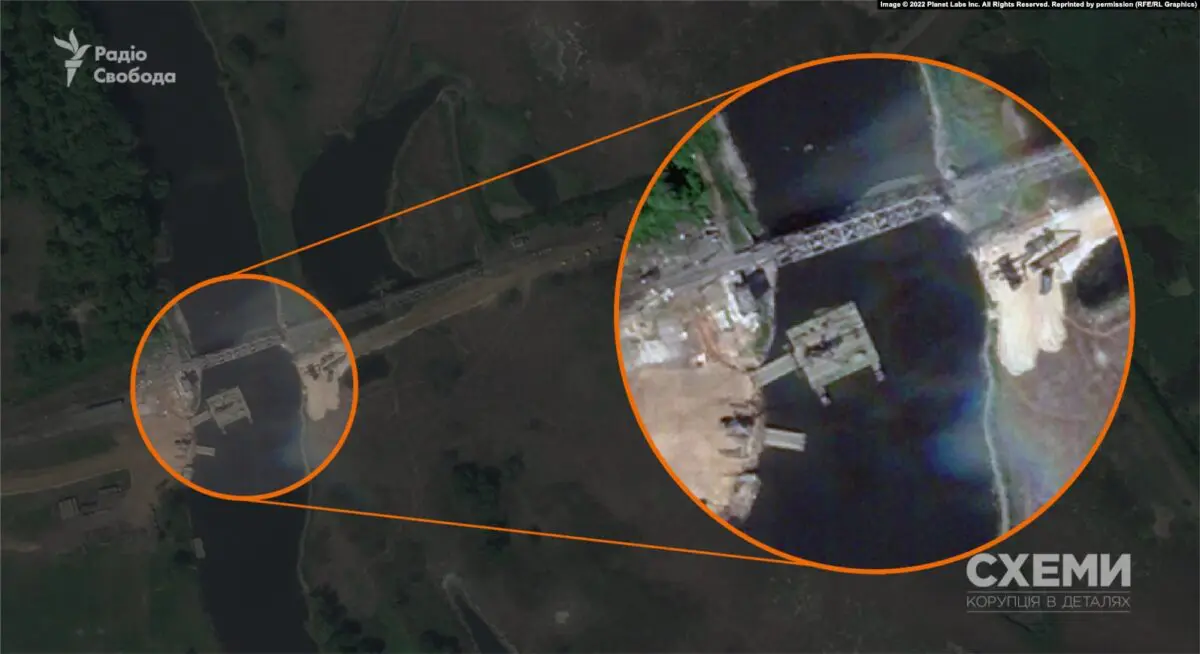 По мнению военных экспертов, к которым обратились журналисты, для оккупантов переправа может быть альтернативой разрушенному мосту, пока не функционирующему. Процесс постройки понтонной переправы спутник зафиксировал еще 3 июня.