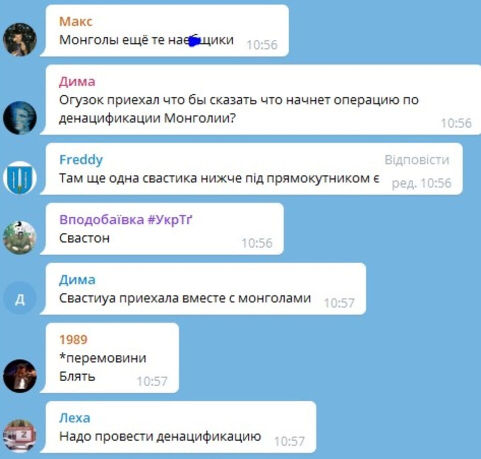 При этом пользователи сети заметили на фото свастику нацистской Германии – в частности, на вазе и столике в зале. Они отреагировали на это словами: "Нужно немедленно денацифицировать Улан-Батор!", намекая на озвученные Кремлем "цели" вторжения его войск в Украину 24 февраля.