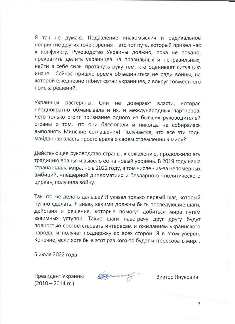 Экс-президент Украины Виктор Янукович выступил с новым обращением к украинцам.