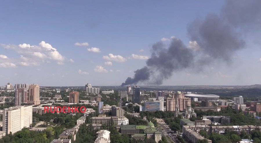 The Kamaz center in Donetsk is on fire. Ammunition detonating can be heard.