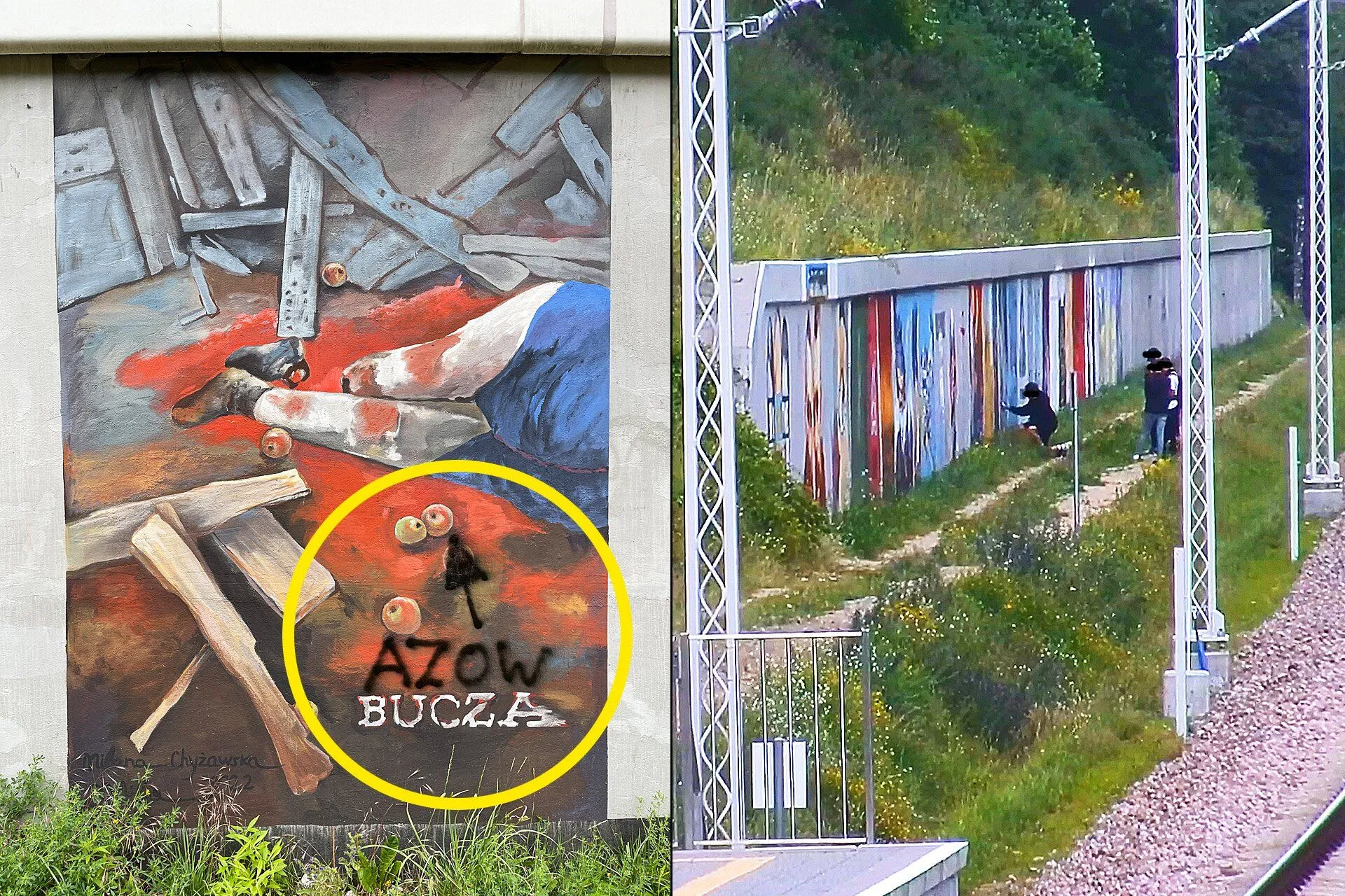 Местные службы оперативно закрасили антиукраинские и пророссийские лозунги. Более того, вандалы уничтожили мурал, посвященный жертвам массового убийства мирных жителей в Буче.