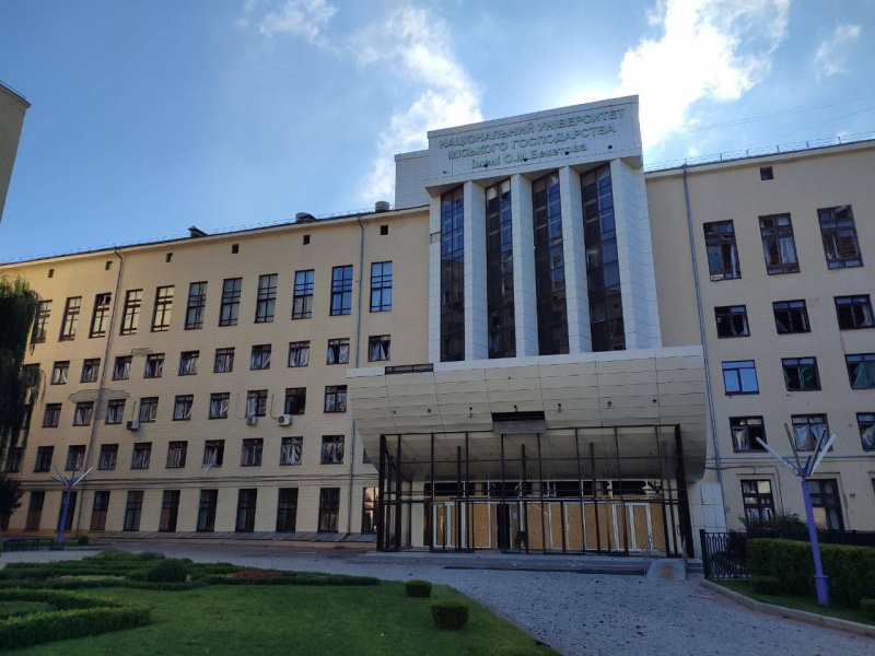 В результате утреннего артобстрела россиян города Харькова пострадала исключительно гражданская инфраструктура. Жилой дом, офисы, под огонь попал и Национальный университет городского хозяйства имени А. Н. Бекетова.