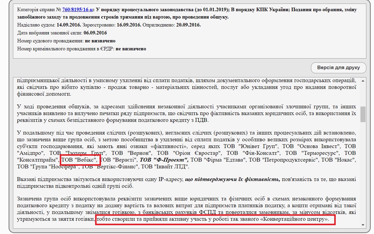 Кроме того, по данным движения «Честно», Криклий – бывший совладелец компании, к которой в свое время возникли вопросы у Государственной фискальной службы. Речь идет об ООО «Вебикс», которое подозревали в том, что оно действовало как конвертационный центр.