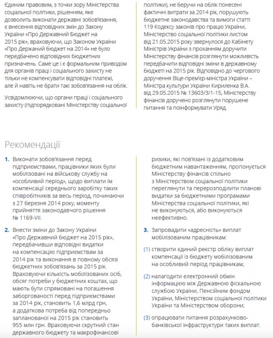 Есть и коллективные жалобы. К омбудсмену обратилась Черниговская региональная торгово-промышленная палата от имени крупных предприятий со штатом 61-620 человек. В обращении сказано, что казначейство отказывается принимать отчеты о выплаченных средствах мобилизованным в 2014 году.