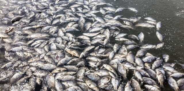 Они публикуют фото мертвой рыбы у берегов озера.