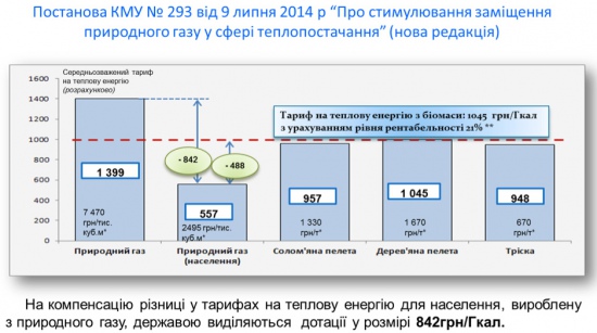 Итак, основная идея постановления Кабмина №293 - перенаправить деньги, которые выделяет госбюджет на удешевление импортного газа для ЖКХ, на поддержку местных видов альтернативного топлива. Чтобы не кормить "Газпром", было решено оставлять эти деньги внутри страны.