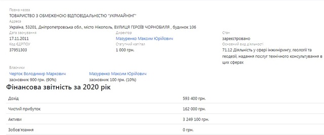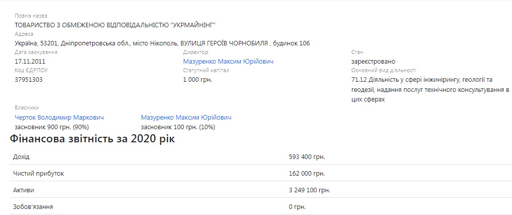 Владимир Черток в 2017 зарегистрировал в Женеве фирму «Укрмайнинг СА». Сфера деятельности – индустрия инженерных услуг, штат – 4 сотрудника, а годовой доход 406 тысяч долларов, что по швейцарским меркам весьма средне. В Украине Черток является совладельцем фирмы с таким же названием. Она зарегистрирована в Никополе, а сфера деятельности – инжиниринг, геология, геодезия и посредничество в торговле топливом, рудами, металлами и промышленными химическими веществами.