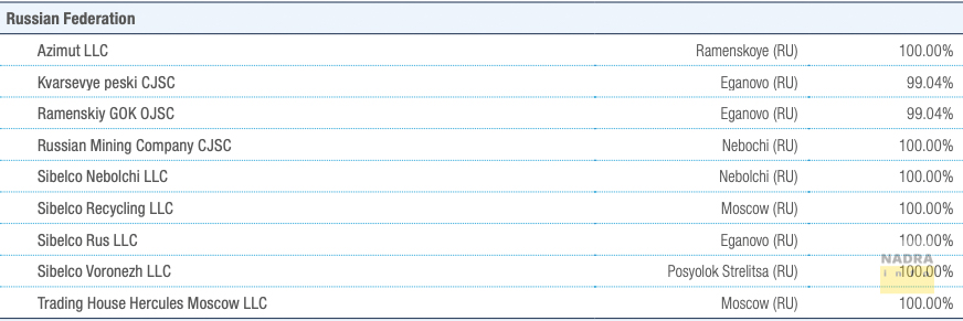 «Sibelco внимательно следит за развитием конфликта между Россией и Украиной, поскольку имеет несколько карьеров и производственных площадок в обеих странах. Военные действия в Украине и введенные в результате этого экономические санкции против Российской Федерации серьезно нарушают способность Sibelco управлять этими предприятиями. В 2021 году операции Группы в Украине и России принесли 140,6 млн. евро к доходу Группы. По состоянию на конец года, вклад в общие активы группы составил 115,3 млн евро для обеих стран. (63,3 млн. евро и 52 млн. евро для Украины и России соответственно).