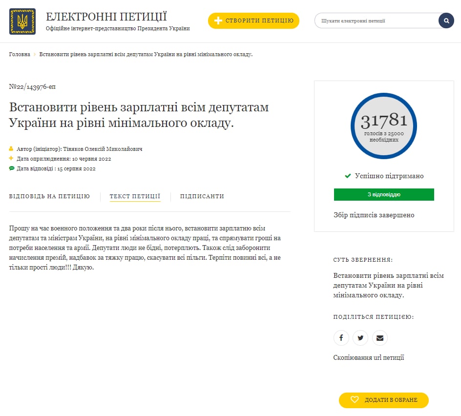 Теги: Народные депутаты УкраиныДепутатиЗарплатаЗеленскийЭлектронные петициипетицииелектронні петиції