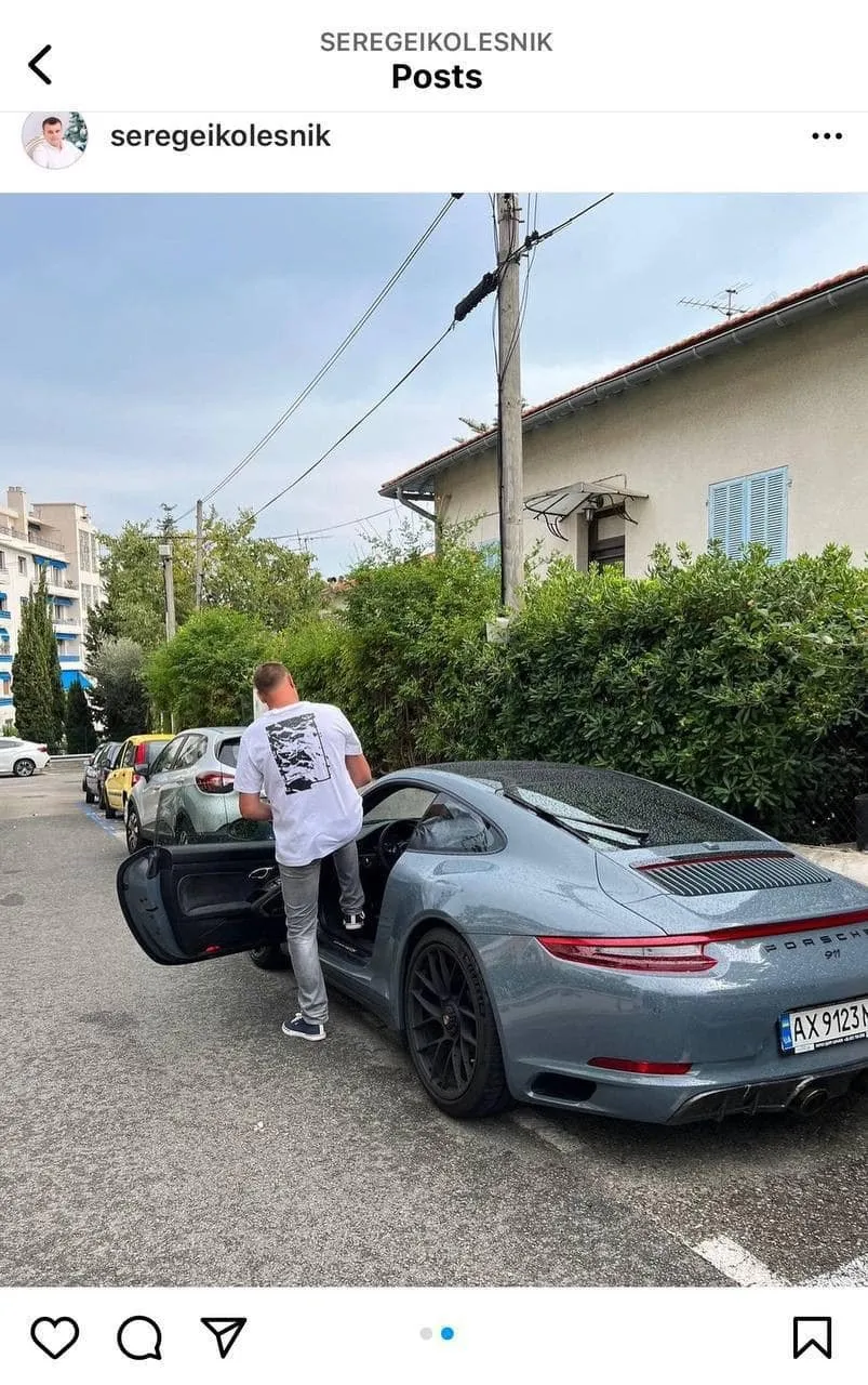 На других снимках видно, что Колесник ездит по Ницце на автомобиле Porsche 911, стоимость которой составляет не менее 200 тысяч евро. Машина, кстати, с харьковскими номерами.