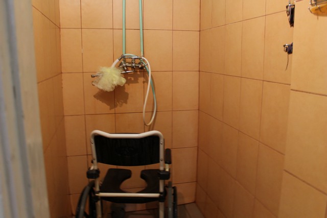 Душевая комната оборудована инвалидным креслом, в которое усаживают и моют тяжелобольного пациента. Банные дни здесь практически каждый день, у каждой палаты – свой график. Полностью моют пациента один раз в неделю. Все дедушки – подстрижены и выбриты. Если учесть, что визит был без предупреждения – понимаешь, что перед глазами не показуха.