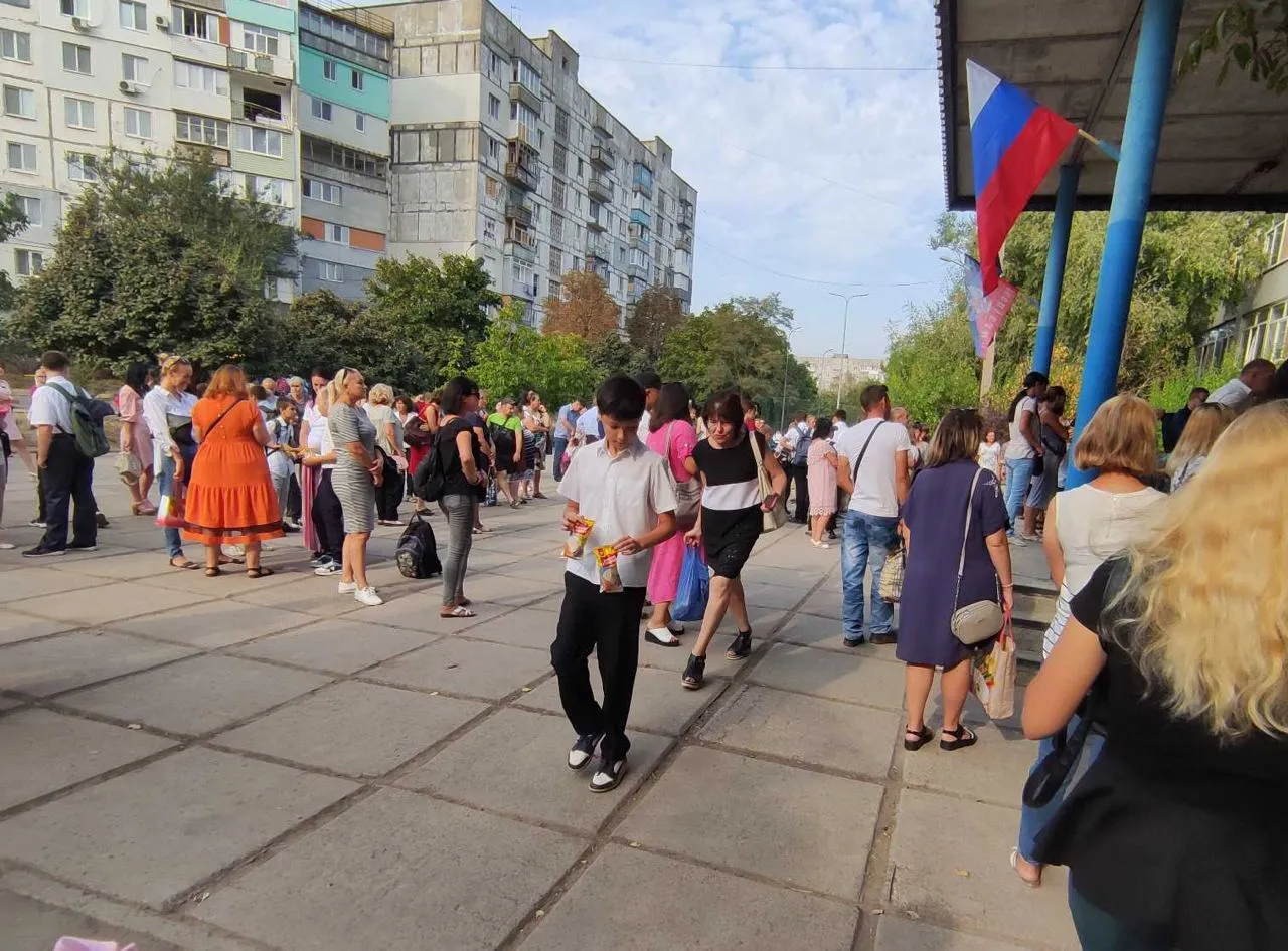 В Мариуполе вооруженные оккупанты пришли попиариться на 1 сентября к школьникам. Фото dqxikeidqxitkant