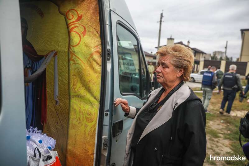Спрашиваю, как россияне обращались с крестьянами. 72-летняя Надежда говорит очень отрывочно и часто плачет: «Приехали сюда, мы их спрашиваем: "Что вы здесь забыли?" А он говорит: "Нам путин пообещал дом и два раба каждому". Хотя бы его мать была в купели утопила, того путина, у него что-то с головой делается».