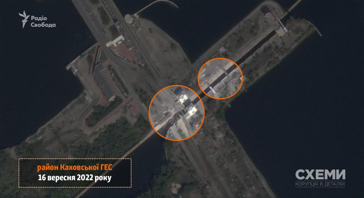 Снимок за 16 сентября также включает две небольшие переправы неподалеку от моста. На спутниковых фото двухнедельной давности они отсутствовали, а значит — оккупанты соорудили их недавно.