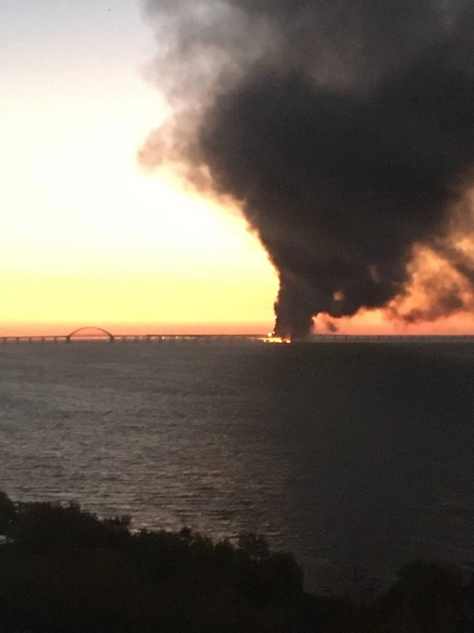 Вспыхнул мощный пожар: На Крымском мосту остановили движение после взрывов