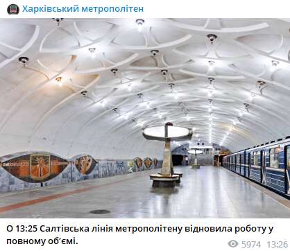 Однако около 13:25 и Салтовская линия метрополитена возобновила работу в полном объеме.