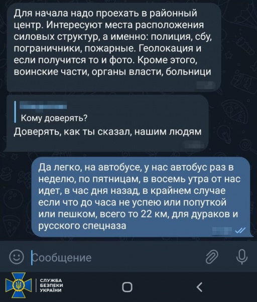 Сотрудники СБУ задокументировали факты сбора агентом сведений о расположении пограничного залога и нескольких блокпостов украинских военных вблизи госграницы. Во время обысков правоохранители обнаружили у него мобильный телефон с поличным с российским куратором.