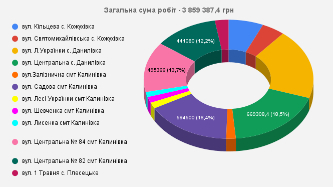 Два тендера касались аварийных и восстановительных работ на территории села Даниловка. Так, проведение работ по ул. Леси Украинки оценили в 689,4 тыс. Еще один аукцион касался ул. Центральная. Стоимость работ составляет чуть меньше – 669,3 тыс. гривен.