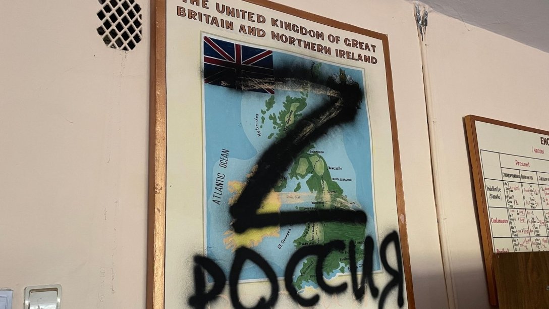 Обстрелы велись с трех верхних этажей школы, ставшей крепостью. Окна были заложены мешками с песком и отверстиями для оружия, как в средневековых замках. Книжные шкафы из библиотеки использовались как укрепления, а на стенах отразилось представление о мире российского президента. Карта Великобритании и Ирландии была нарисована буквой Z, в внизу значилась надпись "Россия". Оставившие ее российские солдаты, судя по всему, не были заинтересованы в изучении английского.