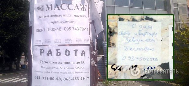 Сообщения о трудоустройстве тоже имеют свои местные особенности. Уже как полгода висит и регулярно обновляется "сладкая парочка" – объявления о круглосуточном любом массаже. Рядом в обязательном порядке висит объявление о наборе массажисток без опыта и с предоставлением жилья. Два объявления с одними и теми же телефонами. Адекватному человеку понятна завуалированность рекламы интимных услуг. Но есть и те, которые клюют.