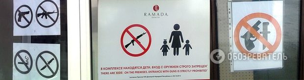 С декабря прошлого года всем местным учреждениям (торговым точкам, гостиницам, учреждениям здравоохранения, культуры и образования) были разосланы рекомендации "разместить в заведениях пиктограммы, предупреждающие о нахождении в них вооруженных лиц". Варианты самих пиктограмм прилагались. С одной стороны, это было шагом по реализации "положения" об ограничении ношения оружия в общественных местах. С другой – "очищение" внешнего облика Донецка. Потому что учреждения и так через объявления умоляли с оружием не входить, но все подобные посылы были выражены в формате "кто во что горазд".